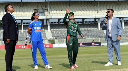 স্পোর্টস ডেস্ক : সিলেট আন্তর্জাতিক স্টেডিয়ামে পাঁচ ম্যাচ টি-টোয়েন্টি সিরিজের তৃতীয় ম্যাচে ভারতের মুখোমুখি হয়েছে বাংলাদেশ। লড়াইয়ে টস জিতে বাংলাদেশকে ব্যাটিংয়ে পাঠিয়েছে ভারত নারী দল।
