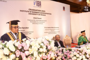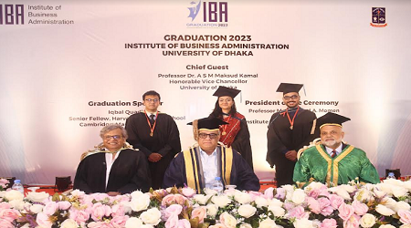 পালন করতে হবে। প্রতিযোগিতামূলক বিশ্বে বিভিন্ন ক্ষেত্রে বিশেষ করে দেশের ব্যবসা-বানিজ্য প্রসারে ও নেতৃত্ব প্রদানে উপাচার্য আইবিএ গ্র্যাজুয়েটদের প্রতি আহ্বান জানান। প্রধানমন্ত্রী শেখ হাসিনার সফল নেতৃত্বে দেশের সার্বিক আর্থ-সামাজিক উন্নয়ন এবং টেকসই উন্নয়ন লক্ষ্যমাত্রা (SDGs) অর্জনে অসাধারণ অগ্রগতির ফলে বাংলাদেশ আজ এক অনন্য উচ্চতায় পৌঁছেছে। দেশের এই অগ্রগতি ও উন্নয়নের ধারা অব্যাহত রাখতে আইবিএ গ্র্যাজুয়েটবৃন্দ গুরুত্বপূর্ণ অবদান রাখবেন বলে উপাচার্য আশাবাদ ব্যক্ত করেন।