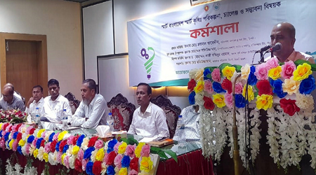 তিনি সোমবার (২৭ মে) সিলেট জেলা পরিষদ হল রুমে কৃষি সম্প্রসারণ অধিদপ্তর ইনোভেশন টিম আয়োজিত স্মার্ট বাংলাদেশ স্মার্ট কৃষি : পরিকল্পনা, চ্যালেঞ্জ ও সম্ভাবনা বিষয়ক কর্মশালাায় প্রধান অতিথির বক্তব্যে উপরোক্ত কথাগুলো বলেন। কৃষি সম্প্রসারণ অধিদপ্তর সিলেট অঞ্চলের অতিরিক্ত পরিচালক মোঃ মতিউজ্জামানের সভাপতিত্বে কর্মশালায় বিশেষ অতিথি ছিলেন, কৃষি প্রশিক্ষণ ইনস্টিটিউট সিলেট এর অধ্যক্ষ ড. মোহাম্মদ কাজী মজিবুর রহমান, কৃষি সম্প্রসারণ অধিদপ্তর সিলেটের উপ-পরিচালক খয়ের উদ্দিন মোল্লা, সুনামগঞ্জের উপ-পরিচালক বিমল চন্দ্র সোম, হবিগঞ্জের উপ-পরিচালক নূরে আলম সিদ্দিকী, মৌলভীবাজারের উপ-পরিচালক শামসুদ্দিন আহমদ।