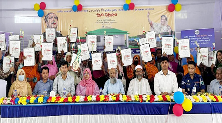 আবু জাহের, শেরপুর (বগুড়া) প্রতিনিধি : বগুড়ার শেরপুর উপজেলার ৪৫টি ভূমি ও গৃহহীন পরিবারকে প্রধানমন্ত্রী উপহার ঘর প্রদান করা হয়েছে। মঙ্গলবার (১১জুন) উপজেলা পরিষদের সভাকক্ষে ওইসব পরিবারের মাঝে ঘরের চাবি ও প্রয়োজনীয় কাগজপত্র হস্তান্তর করা হয়। সেইসঙ্গে শেরপুর উপজেলাকে ভূমি ও গৃহহীনমুক্ত ঘোষণা করা হয়েছে। এরআগে প্রধানমন্ত্রী শেখ হাসিনা ভার্চুয়ালি সারাদেশে ১৮৫৬৬টি ভূমিহীন পরিবারের মাঝে ঘর প্রদানের আনুষ্ঠানিক উদ্বোধন এবং গৃহহীনমুক্ত এলাকার জেলা-উপজেলার নাম ঘোষণা করেন।