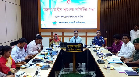 সভায় আগামী কোরবানী ঈদকে সামনে রেখে গরুর হাটের চাঁদাবাজি নিয়ন্ত্রণ, রাঙামাটিতে আইনশৃঙ্খলা পরিস্থিতির উন্নতিকরণ, জেলা কারাগারের আসামী-কয়েদিদের মাদকমুক্ত রাখা, মাদক বিরোধী অভিযান জোরদার করাসহ রাঙামাটিতে চোরাচালান বিরোধী ট্রান্সফোর্সের অভিযানের মাধ্যমে সীমান্তে নজরদারি বৃদ্ধি, রাঙামাটিতে সহনীয় পর্যায়ে বিদ্যুৎ সেবা নিশ্চিতকরণ, অবৈধ দখলদারদের বিরুদ্ধে ব্যবস্থাগ্রহণসহ চোরাচালানিদের বিরুদ্ধে প্রয়োজনীয় পদক্ষেপ নেওয়ার উপর গুরুত্বারোপ করতে সংশ্লিষ্ট সকলের প্রতি আহবান জানিয়েছেন রাঙামাটির জেলা প্রশাসক মোহাম্মদ মোশারফ হোসেন খান।