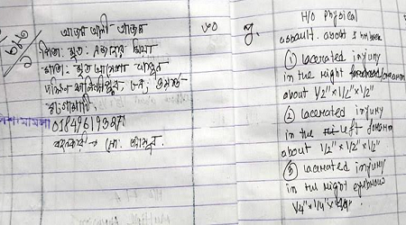সকালে আমার দেবরের বাসায় তথা উপরে গরু জবাই করলে যে রকম আওয়াজ সে রকম আওয়াজ শুনতে পেয়ে পাশের্^র একজনকে নিয়ে আমি উপরে উঠি। তখন দেখি আমার দেবর জাবর কাটতেছে। আর তার স্ত্রী শেলি জানালা দিয়ে পালিয়েছে। তখন সবাই বলে পুলিশকে খবর দাও তখন আমি বলি আগে তাকে হাসপাতাল নিয়ে যাও পরে আইনী ব্যবস্থা হবে।