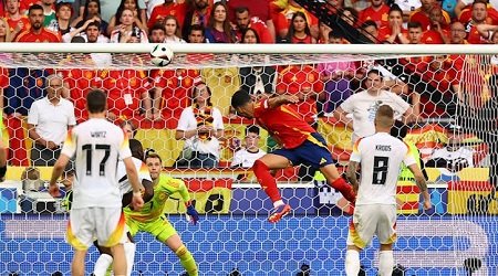 ২০২৪ ইউরোর কোয়ার্টার ফাইনালে ২-১ গোলে জয় তুলে নিয়েছে স্প্যানিশরা। স্টুটগার্ট অ্যারেনায় আজ দানি ওলমোর গোলে এগিয়ে গিয়েছিল স্পেন। দ্বিতীয়ার্ধের শেষ মুহূর্তে ভির্টৎসের গোলে সমতায় ফেরে জার্মানি। কিন্তু অতিরিক্ত সময়ে গিয়ে মিকেল মেরিনোর গোলে জয় নিয়ে মাঠ ছাড়ে লুইস দে লা ফুয়েন্তের দল।