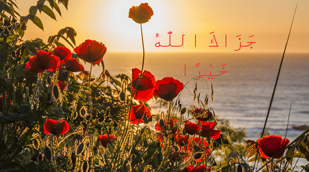 جَزَاكَ اللَّٰهُ خَيْرًا উচ্চারণ: জাযাকাল্লাহু খাইরান। (অর্থ: আল্লাহ আপনাকে উত্তম প্রতিদান দিন।) কারও থেকে কোনো উপকার পেলে তাকে ‘জাযাকাল্লাহ’ বলা উচিত। কেউ সামান্য উপকার করলেই জাযাকাল্লাহ বলবো। জাযাকাল্লাহ-এর সঙ্গে খাইরান শব্দ যোগ করে ‘জাযাকাল্লাহু খাইরান’ বলা অধিক উত্তম।