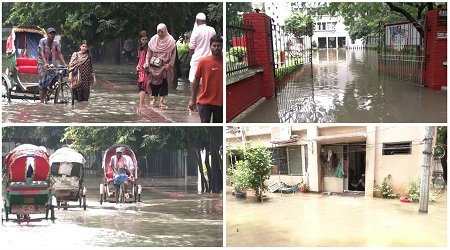 বৃষ্টির পানি ঘরে ঢুকে কেড়ে নিয়েছে বাসিন্দাদের থাকা-খাওয়া এমনকি বন্ধ হয়ে যায় টেয়লেটে যাওয়ার ব্যবস্থাও! শুধু বুয়েট ক্যাম্পাসই নয়, বকশিবাজার, পলাশিসহ শনিবারও (১৩ জুলাই) পানিবন্দি দক্ষিণ সিটির অনেক এলাকা।
