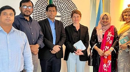 ডেস্ক নিউজ : ঢাকায় নিযুক্ত জাতিসংঘের আবাসিক সমন্বয়ক গোয়েন লুইসের সঙ্গে সাক্ষাৎ করেছেন আমার বাংলাদেশ পার্টি-এবি পার্টি নেতারা। সোমবার দুপুরে পূর্বনির্ধারিত এ বৈঠকে জাতিসংঘের এসডিজি (সাসটেইনেবল ডেভেলপমেন্ট গোল) বা টেকসই উন্নয়ন লক্ষ্যমাত্রা ও বাংলাদেশ প্রেক্ষিত নিয়ে দ্বিপাক্ষিক মতবিনিময় অনুষ্ঠিত হয়।