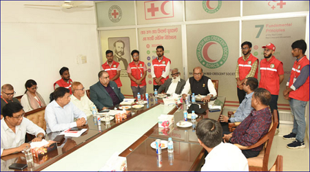 বুধবার সকালে বাংলাদেশ রেড ক্রিসেন্ট সোসাইটির জাতীয় সদরদপ্তরে জরুরি এক সভায় উপস্থিত হয়ে এ আহ্বান জানান তিনি।