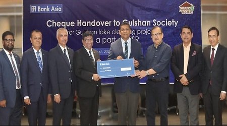 ডেস্ক নিউজ : সামাজিক দায়বদ্ধতামূলক কার্যক্রমের আওতায় গুলশান লেক পরিস্কার পরিচ্ছন্ন ও নিষ্কাশন কাজের জন্য গুলশান সোসাইটির অনুকূলে বরাদ্দকৃত দশ লক্ষ টাকার চেক হস্তান্তর করলো ব্যাংক এশিয়া পিএলসি।