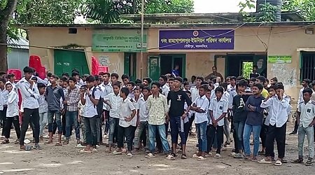এ সময় জনির চাচা যোগেন্দ্র কিশোর উচ্চ বিদ্যালয়ের প্রধান শিক্ষক মো. মিজানুর রহমান তার ভাতিজাকে রক্ষা করতে বিদ্যালয়ের শিক্ষার্থীদের ইউনিয়ন পরিষদের সামনে পাঠিয়ে দিয়ে আমাদের কর্মসূচিতে বাধা দেয়। আমরা চেয়ারম্যানের অপসারণ চাই। আমরা ইউনিয়ন পরিষদ ভাঙতে যাইনি। কোমলমতি শিশুরা আমাদের সামনে আসায় তাদের বুঝিয়ে-শুনিয়ে ক্লাসে পাঠানো হয়েছে।