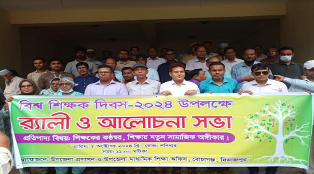 বোচাগঞ্জ (দিনাজপুর) প্রতিনিধি : “শিক্ষকের কন্ঠস্বর, শিক্ষায় নতুন সামাজিক অঙ্গিকার” এই প্রতিপাদ্য বিষয়কে সামনে রেখে দিনাজপুরের বোচাগঞ্জে শনিবার বিশ্ব শিক্ষক দিবস ২০২৪ র্যালী ও আলোচনা সভার মধ্যেদিয়ে উদযাপন করেছে উপজেলা প্রশাসন ও উপজেলা মাধ্যমিক শিক্ষা অফিস। সকাল ১১টায় উপজেলা ক্যাম্পাস হতে একটি শিক্ষক র্যালী বের হয়।