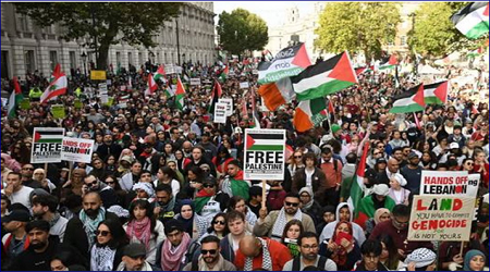 আন্তর্জাতিক ডেস্ক : ব্রিটেনের রাজধানী শহর লন্ডনে ইসরায়েলবিরোধী বিক্ষোভে হাজার হাজার মানুষের ঢল দেখা গেছে।