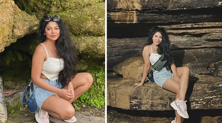 ছবিতে তাকে খোলা চুল, মাথায় রোদ চশমা আর নো মেকআপ লুকে গুহায় বসে থাকতে দেখা গেছে। পরনে ছিল সাদা ক্রপ টপ আর হাফ জিন্স। গলায় ঝুলানো ছিল ফ্যাশনেবল একটি ব্যাগ।