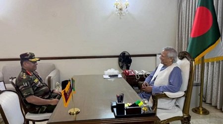 রোববার রাষ্ট্রীয় অতিথি ভবন যমুনায় এ সাক্ষাৎ অনুষ্ঠিত হয়েছে। সাক্ষাতকালে সেনাবাহিনী প্রধান কুশলাদি বিনিময়ের পাশাপাশি সেনাবাহিনীর চলমান কার্যক্রম সম্পর্কে প্রধান উপদেষ্টাকে অবহিত করেন। এসময় প্রধান উপদেষ্টা ড. মুহাম্মদ ইউনূস সেনাবাহিনী প্রধানকে প্রয়োজনীয় দিকনির্দেশনা প্রদান করেন।