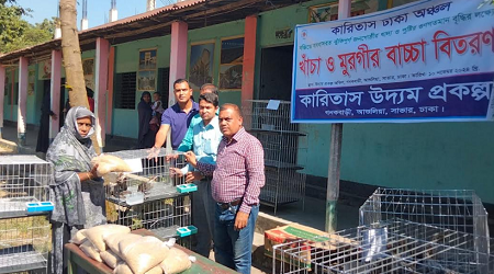 প্রান্তীক পর্যায়ের হত দরিদ্রদের মাঝে মুরগীর খাঁচা, মুরগীর বাচ্চা এবং মুরগীর খাদ্য বিতরণ করা হয়। প্রত্যেক পরিবারকে একটিবকরে খাঁচা, আটটি মুরগীর বাচ্চা ও মুরগীর খাদ্য বিতরণ করা হয়। যাতে তারা নিজেরাই ডিম এবং মুরগী পালন করে আমিষের চাহিদা পুরণ করতে পারে।