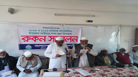 নবনির্বাচিত আমির মাওলানা গোলাম মোরশেদ শপথ গ্রহণ শেষে দায়িত্বভার গ্রহণ করতে গিয়ে কান্নায় ভেঙে পড়েন। এ সময় তিনি তার উপর অর্পিত দায়িত্ব যথাযথ পালনের জন্য উপজেলার সকল দায়িত্বশীলদের সহযোগিতা কামনা করেছেন।