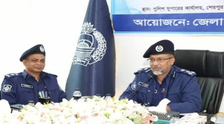লুৎফুন্নাহার রুমা,বিভাগীয় প্রতিনিধী ময়মনসিংহ : শেরপুর জেলার সুশীল সমাজের প্রতিনিধিদের জেলা পুলিশ উদ্যোগে সার্বিক আইন-শৃঙ্খলার মতবিনিময় সভা অনুষ্ঠিত হয়েছে। বৃহস্পতিবার (১২ ডিসেম্বর) বেলা ১১.০০ টায় শেরপুর পুলিশ সুপারের কার্যালয়ের সম্মেলনে কক্ষে সম্মানিত পুলিশ সুপার মোঃ আমিনুল ইসলামের সভাপতিত্বে আয়োজিত সভায় প্রধান অতিথি হিসেবে উপস্থিত ছিলেন ময়মনসিংহ রেঞ্জের ডিআইজি ড. মোঃ আশরাফুর রহমান ।