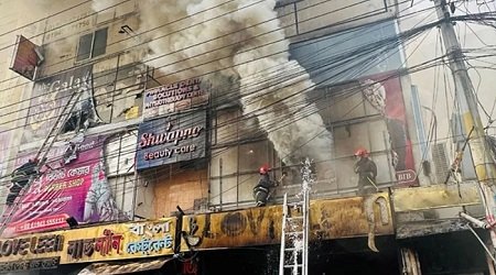 তিনি আরও বলেন, ধোঁয়ায় আচ্ছন্ন ভবনটির চারপাশ। আটকা পড়াদের উদ্ধারে ফায়ার সার্ভিসের টিটিএল গাড়ি নেওয়া হয়েছে। তাদেরকে উদ্ধারে চেষ্টা চলছে।