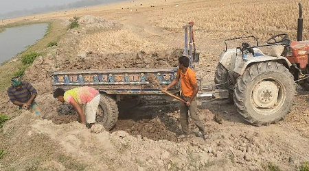 দিনাজপুর প্রতিনিধি : বোচাগঞ্জ উপজেলার ২নং-ঈশানিয়া ইউনিয়নের বকুলতলা জয়নন্দ হাট সড়কের মাঝখানে বড়পুল চয়তু নদীর পার অবৈধ ভাবে কেটে ট্রাক্টরে করে মাটি নিয়ে যাওয়ার সময় ২২ ডিসেম্বর রবিবার বেশ কিছু ট্রাক্টর আটক করেছে প্রশাসন।