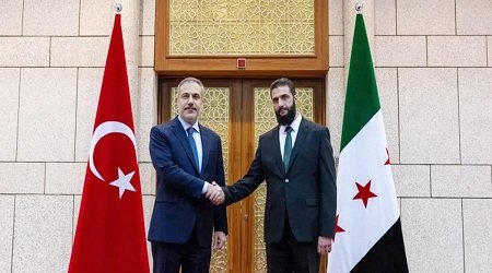 আঙ্কারা-দামেস্ক কূটনৈতিক সম্পর্কের উন্নয়ন আর সিরিয়ার পুনর্গঠন নিয়ে দুই নেতার মধ্যে হয় গুরুত্বপূর্ণ বৈঠক। বৈঠক শেষে যৌথ সংবাদ সম্মেলন করেন আল শারা ও হাকান ফিদান। সিরিয়ার উন্নয়নে সব ধরনের সহযোগিতা দিয়ে পাশে থাকার আশ্বাস দেন তুর্কি পররাষ্ট্রমন্ত্রী। দেশটির ওপর থেকে আন্তর্জাতিক নিষেধাজ্ঞা তুলে নিতে আহ্বান জানান পশ্চিমাদের প্রতি।