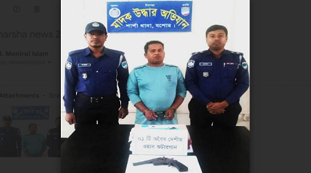 শার্শা থানার এসআই হযরত আলী জানান, শার্শা থানার অফিসার ইনচার্জ মোঃ আমির আব্বাস এর দিক নির্দেশনা গোপন সংবাদের ভিত্তিতে জানতে পারি নাভারন গরু হাট এলাকা থেকে একটি অস্ত্রের চালান পাচার হবে। এমন সংবাদে নাভারন গরু হাট সমবায় মার্কেটে অভিযান চালিয়ে স্থানীয় জনগনের সহায়তায় উজ্বল হোসেনকে একটি অবৈধ দেশীয় ওয়ান শুটার গানসহ আটক করা হয়।