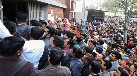 জানা যায়, ৫ নম্বর গেট দিয়ে আইডি কার্ড পাঞ্চ করে ঢুকতে হয়। এর ফলে লাইনের দীর্ঘতা বৃদ্ধি পাচ্ছে।