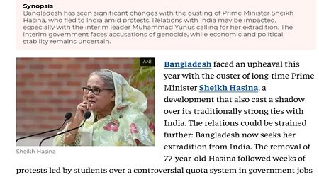 ইকোনমিক টাইমস এক প্রতিবেদনে জানিয়েছে, বাংলাদেশের অন্তর্বর্তী সরকারের আনুষ্ঠানিক অনুরোধ সত্ত্বেও আওয়ামী লীগের সভাপতি ও সাবেক প্রধানমন্ত্রী শেখ হাসিনাকে ফেরত দেবে না ভারত।