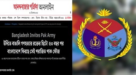 গত ২৭ ডিসেম্বর ভারতীয় গণমাধ্যম ‘আনন্দবাজার পত্রিকায়’ (অনলাইন) প্রকাশিত ‘উর্দিতে বাঙালি গণহত্যার রক্তের ছিটে! ৫৩ বছর পর বাংলাদেশে ফিরছে সেই পরাজিত পাক ফৌজ’ শিরোনামের প্রতিবেদনটিতে বাংলাদেশ সেনাবাহিনী সম্পর্কে বিভ্রান্তিকর এবং ভিত্তিহীন তথ্য উপস্থাপন করা হয়েছে।