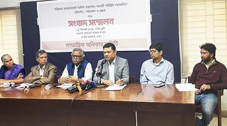 ডেস্ক নিউজ : জাতীয় প্রেসক্লাবে গণতান্ত্রিক অধিকার কমিটি আয়োজিত ‘চট্টগ্রামে আইনজীবী আলিফ হত্যাকাণ্ড পরবর্তী পরিস্থিতি সরেজমিনে পরিদর্শন: পর্যবেক্ষণ ও প্রস্তাব’ শীর্ষক সংবাদ সম্মেলন এই মন্তব্য করেন। আনু মহাম্মদ বলেন, ‘আলিফ হত্যাকাণ্ডে পাইকারি দরে মামলা হচ্ছে। অজ্ঞাতনামা আসামি বাণিজ্য চলছে। হরিজন কলোনি এবং সংখ্যালঘু সম্প্রদায় এর শিকার হচ্ছে। হিন্দু পরিচয়ের কারণে অনেকে নিরাপত্তাহীনতায় ভুগছে।’