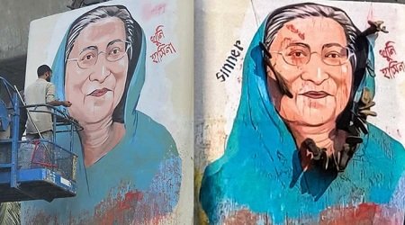 শনিবার রাতে বিশ্ববিদ্যালয় প্রশাসনের নির্দেশে সিটি করপোরেশনের কর্মীরা জনতার ‘ক্ষোভ ও ঘৃণা’র প্রতীক হয়ে ওঠা শেখ হাসিনার এই গ্রাফিতি মোছার কাজ শুরু করেন।