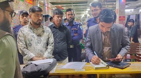 জাতীয় ভোক্তা-অধিকার সংরক্ষণ অধিদপ্তর নারায়ণগঞ্জ নিয়মিত তদারকি এবং ব্যবসায়ীরা যাতে ভোক্তার কাছে গুণগত খাদ্য পণ্য সরবরাহ করে সে লক্ষ্যে জাতীয় ভোক্তা-অধিকার সংরক্ষণ অধিদপ্তর নারায়ণগঞ্জের সহকারী পরিচালক হৃদয় রঞ্জন বণিক এ অভিযান পরিচালনা করেন। তিনি জানান, অভিযানে প্রতিষ্ঠানটিতে ফ্রিজে কাঁচা মাংসের সাথে রান্না করা মাংস, পূর্বে রান্না করা বাসি গ্রিল, চিকেন চাপ ও শিক কাবাব পাওয়া যায়।
