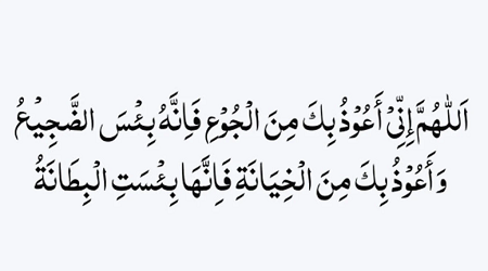 অর্থ : হে আল্লাহ! আমি আপনার কাছে দুর্ভিক্ষ ও ক্ষুধা থেকে আশ্রয় চাই, কারণ তা নিকৃষ্ট শয্যাসঙ্গী। আমি আপনার কাছে আশ্রয় চাই খিয়ানত করা থেকে, কেননা তা খুবই নিকৃষ্ট বন্ধু।