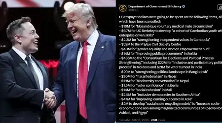 ইন্ডিয়া টুডে-এর প্রতিবেদনে জানানো হয়, ইলন মাস্কের নেতৃত্বাধীন ডিপার্টমেন্ট অব গভর্নমেন্ট এফিসিয়েন্সি (ডিওজিই) রোববার (১৬ ফেব্রুয়ারি) এক ঘোষণায় জানায়, বাজেট কাটছাঁটের অংশ হিসেবে ভারত ও বাংলাদেশের জন্য নির্ধারিত তহবিল বাতিল করা হয়েছে।