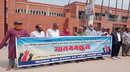 শনিবার (১ মার্চ) বেলা সোয়া ১১টায় নোয়াখালী নোয়াখালী প্রেসক্লাবের সামনের সড়কে অনুষ্ঠিত মানববন্ধনে নাগরিক সমাজের প্রতিনিধি, সাংবাদিক, সমাজকর্মীসহ বিভিন্ন শেণি পেশার প্রতিনিধিগণ উপস্থিত ছিলেন।