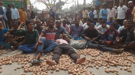 এ সময় আন্দলনরত আলু চাষিরা জানান, ২০২৪ সালে ৬০ কেজি এক বস্তা আলু সংরক্ষণ হিমাগারের ভাড়া ছিল ৩ শত ৫০ টাকা। কিন্তু চলতি বছরে হিমাগার কর্তৃপক্ষ কোন প্রকার ঘোষণা ছাড়াই একই বস্তা আলুর ভাড়া চার শত ৮০ টাকা নির্ধারণ করায় প্রান্তিক কৃষকরা দিশাহারা হয়ে পড়েন। তারই প্রতিবাদে লালমনিরহাটের প্রান্তিক আলু চাষিরা আজ সড়ক অবরোধ করে প্রতিবাদ জানাচ্ছেন। বর্তমানে বাজারে আলুর কেজি ১০ টাকা। এই ১০ টাকার মধ্যে যদি ৮ টাকায় হিমাগার মালিক নিয়ে নেয় তাহলে কৃষকরা পাচ্ছেন মাত্র ২টাকা। তাতে করে সাধারন কৃষকগণ ক্ষতির মুখে পড়ছেন। আলু সংরক্ষণে হিমাগারের বাড়তি ভাড়া বাতিল করে পূর্বের ভাড়া বহাল রাখার দাবী জানান তারা।