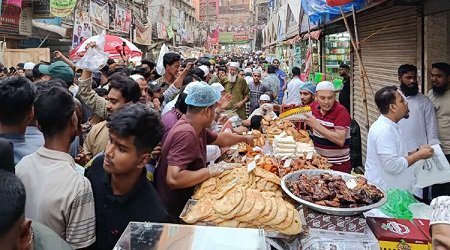 ডেস্ক নিউজ : রমজানের প্রথম দিন জমে উঠেছে রাজধানীর পুরান ঢাকার ঐতিহ্যবাহী চকবাজারের ইফতার বাজার। তবে গত বছরের চেয়ে ইফতার আইটেমের দাম তুলনামূলক বেশি। দুপুর থেকেই চকবাজারের শাহি মসজিদের সামনের রাস্তায় কয়েকশ দোকানি ইফতারির পসরা সাজিয়ে বসেছেন। দুপুরের পর থেকেই ইফতার কিনতে বিভিন্ন এলাকার মানুষ ভিড় করতে শুরু করে।