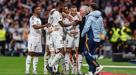 সান্তিয়ানো বার্নাব্যুতে ৩২ মিনিটে এমবাপ্পের পেনাল্টি গোলে এগিয়ে যায় রিয়াল। ব্যবধান কমাতে এক মিনিটও লাগেনি সফরকারীদের, গার্সিয়ার গোল ব্যবধান ১-১ করে। সমতায় ফেরা দলটি প্রথমার্ধে লিডও নিয়ে নেয় রাবার ৪১ মিনিটের গোলে। কিন্তু জয়টা রিয়ালের ভাগ্যেই লেখা ছিল।