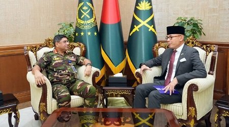 ডেস্ক নিউজ : বাংলাদেশ সেনাবাহিনীর প্রধান জেনারেল ওয়াকার-উজ-জামানের সঙ্গে সৌজন্য সাক্ষাৎ করেছেন ইন্দোনেশিয়ার পররাষ্ট্রবিষয়ক উপমন্ত্রী আরামানথা ক্রিস্টিয়ানা নাসির। মঙ্গলবার (৩ জুন) ঢাকা সেনানিবাসে এই সাক্ষাৎ অনুষ্ঠিত হয়।