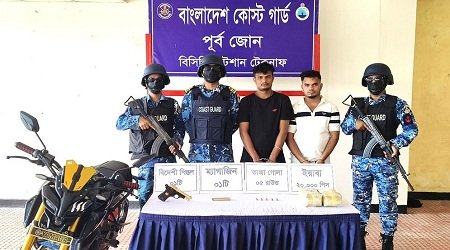 আটকরা হলেন- হ্নীলা ইউনিয়নের জাদিমুড়া এলাকার শফি উল্লাহর ছেলে মো. মিজানুর রহমান (২০) এবং দমদমিয়া এলাকার আইয়ুবের ছেলে মো. একরাম (২৬)। মঙ্গলবার (২৪ জুন) দুপুরে কোস্টগার্ড মিডিয়া কর্মকর্তা লে. কমান্ডার হারুন-অর-রশীদ এ তথ্য জানান।