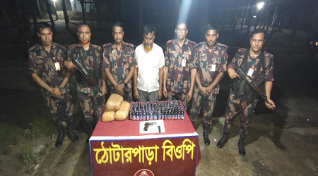 এসময় তার কাছ থেকে উদ্ধার করা হয় একটি বিদেশী পিস্তুল, একটি ম্যাগাজিন, একরাউন্ড গুলি, ১০০ বোতল ফেনসিডিল এবং ৫ কেজি ৭০০ গ্রাম গাঁজা। আটক মাদক ব্যবসায়ী আব্দুস সালাম রামকৃষ্ণপুর ইউনিয়নের ৩ নম্বর ওয়ার্ডের সদস্য সে মোহাম্মদপুর গ্রামের মৃত মওলা বক্সের ছেলে। রবিবার দুপুরে প্রেস বিজ্ঞপ্তি সূত্রে এ তথ্য নিশ্চিত করেছে বিজিবি।