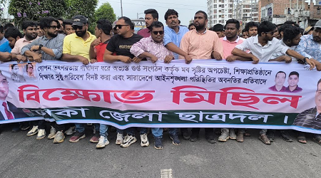সোমবার আশুলিয়ার পল্লীবিদ্যুৎ এলাকা থেকে এ বিক্ষোভ মিছিল করেন তারা। বিক্ষোভ মিছিলটি পলাশবাড়ী ও নবীনগর এলাকা প্রদক্ষিণ করে যথাস্থানে এসে সমাবেত হয়। সেখানে এক সংক্ষিপ্ত সমাবেশের আয়োজন করা হয়। ঢাকা জেলা ছাত্রদলের সাবেক যুগ্ম আহবায় মো: সাজ্জাদ হোসেন আদরের নেতৃত্বে এতে অংশগ্রহণ করেন, ঢাকা জেলা ছাত্রদলের যুগ্ম- আহবায়ক হামিদুর রহমান সাদ্দাম সহ অন্যান্য নেতাকর্মীরা।