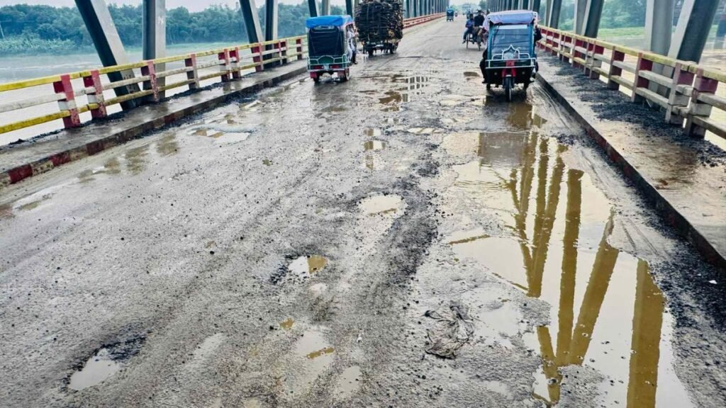 কুষ্টিয়া-রাজবাড়ী আঞ্চলিক মহাসড়কের কুমারখালী অংশে অবস্থিত গড়াই নদীর ওপর নির্মিত সেতুটি দিয়ে প্রতিদিন শত শত যানবাহন চলাচল করে। বিশেষ করে পণ্যবাহী ট্রাক, বাস ও ছোট যানবাহনের অন্যতম পথ এটি। কিন্তু সড়কের বেহাল দশায় প্রায়শই ঘটছে দুর্ঘটনা। বাইকচালক শামছুল আলম বলেন, ‘১৫ দিন আগে সংস্কার করা রাস্তাটি এখন আগের চেয়েও খারাপ। বাইক নিয়ে চলাফেরা করাই দায়।’ ট্রাকচালক জামিল হোসেন বলেন, ‘এই রাস্তা দিয়ে ট্রাক চালানো মানে মৃত্যু ঝুঁকি নিয়ে চলা।’ আর অটোচালক আক্কাস বলেন, ‘আমার অটো উল্টে যাত্রীরা আহত হয়েছে। পেটের দায়ে ঝুঁকি নিয়ে চলাচল করি। স্থানীয়রা জানান, পিচ ও পাথর দিয়ে শুধু নামমাত্র সংস্কার দেখিয়ে পুরো টাকা উত্তোলন করা হয়েছে। কাগজে-কলমে কাজ দেখিয়ে পুরো প্রকল্পের অর্থ লুটে নেওয়া হয়েছে বলে অভিযোগ। এই প্রকল্পের দায়িত্বে থাকা উপ-প্রকৌশলী লিটন আহমেদ বলেন, ‘কাজে কিছু ত্রুটি হয়েছে, তবে অনিয়ম হয়নি।’ তবে পুরো দায় তিনি নির্বাহী প্রকৌশলী ও আবহাওয়ার ওপর চাপিয়ে দেন। এদিকে ঠিকাদার প্রতিষ্ঠান মাসুদ করিম এন্টারপ্রাইজের মালিকের সঙ্গে একাধিকবার ফোনে যোগাযোগের চেষ্টা করেও তাকে পাওয়া যায়নি। সওজ কুষ্টিয়ার নির্বাহী প্রকৌশলী মোহাম্মদ মনজুরুল করিম বলেন, ‘বৃষ্টির কারণে পিচ উঠে গেছে। এখানে ঠিকাদারের কোনো দোষ নেই। সরকার এ প্রকল্পে আর বরাদ্দও দেবে না। অভিযোগ রয়েছে, প্রতিবছর নামমাত্র সংস্কার দেখিয়ে বরাদ্দকৃত অর্থ লুটপাট করা হচ্ছে। সাধারণ মানুষ এ বিষয়ে তদন্তপূর্বক দায়ীদের বিরুদ্ধে শাস্তিমূলক ব্যবস্থা গ্রহণের দাবি জানিয়েছেন।