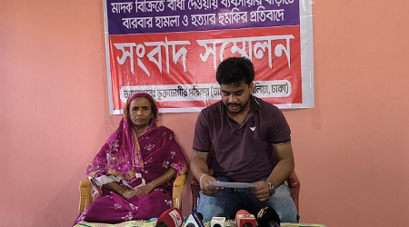 আশুলিয়া (ঢাকা) প্রতিনিধি : আশুলিয়ায় চিহ্নিত মাদক ব্যবসায়ী ও কিশোর গ্যাংয়ের লিডারের অভিযোগ এনে ইয়ার হোসেনে নামের এক ব্যক্তির বিরুদ্ধে সংবাদ সম্মেলন করেছেন স্থানীয় যুবক মো. রবিন হোসেন। রবিবার (২৮ সেপ্টেম্বর) সংবাদ সম্মেলনে লিখিত বিজ্ঞপ্তিতে তিনি নিজের জীবননাশের শঙ্কা প্রকাশ করেন এবং সেনাবাহিনীর হস্তক্ষেপ কামনা করেন।