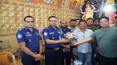 এ সময় নরসিংদীর অতিরিক্ত পুলিশ সুপার (প্রশাসন ও অর্থ) মো. কলিমুল্লাহ, বিপিএম অতিরিক্ত পুলিশ সুপার (সদর সার্কেল) মো. আনোয়ার হোসেন, নরসিংদী জেলা পূজা উদযাপন ফ্রন্টের আহ্বায়ক দীপক কুমার বর্মন প্রিন্স, সদস্য সচিব মিঠু রঞ্জন ধর, সিনিয়র যুগ্ম আহ্বায়ক কাজল সাহা, কৃষ্ণকান্ত সাহা, আসিস চক্রবর্তী প্রমুখ। এ সময় নরসিংদী শহরের মধ্যকান্দা পাড়ার বাগবিতান ক্লাব, অগ্রবাণী এবং সেবা সংঘ দূর্গাবাড়ির পূজা মণ্ডপ পরিদর্শন করেন।