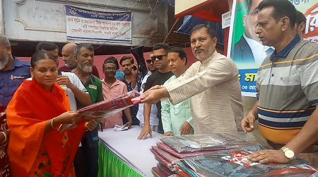 হিন্দু ধর্মাবলম্বীদের এই মহা শারদীয় উৎসবে নতুন পোষাকে সবাই যেন আনন্দ উপভোগ করতে পারে সেই চেতনায় অসহায় ও দরিদ্রদের মাঝে শাড়ি বিতরণ করেন নওগাঁ জেলা বিএনপির সাবেক যুগ্ম সাধারন সম্পাদক এবং বিশিষ্ট সমাজ সেবক ও নওগাঁ সদর-৫ আসনের এমপি পদে মনোনয়ন প্রত্যাশী মো: মাসুদ হাসান তুহিন। বুধবার বিকেল ৪টায় নওগাঁ শহরের সুপারি পট্টি মন্দিরে সদর উপজেলার ৩৫টি মন্দিরে প্রায় ৫ শত মানুষের মাঝে এ শাড়ি বিতরণ করা হয়।