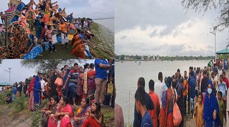 বাংলাদেশের বিভিন্ন এলাকার দুর্গা প্রতিমাকে বিসর্জনের জন্য নিয়ে আসা হয় সীমান্ত নদীতে। অপরদিকে ভারতের উত্তর ২৪ পরগনা জেলার হাসনাবাদ, টাকী ও হিঙ্গলগঞ্জসহ বিভিন্ন এলাকার প্রতিমাও নিয়ে আসা হয়। তবে ভারতের সীমানায় আনন্দের তরী নামলেও বাংলাদেশের পাড়ে কাউকে আইনশৃৃঙ্খলা বাহিনী নামতে না দেয়ার অভিযোগ দর্শার্থীদের।