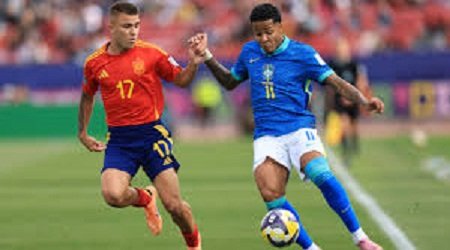 খেলার নিউজ ডেক্সঃ অনূর্ধ্ব-২০ ফিফা বিশ্বকাপে জয়শূন্য থেকে আসর থেকে বিদায় নিয়েছে ব্রাজিল। রোববার (৫ অক্টোবর) ভোরে স্পেনের বিপক্ষে ১-০ গোলে হেরে ‘সি’ গ্রুপের তলানিতে থেকে আসর শেষ করেছে সেলেসাওরা। টুর্নামেন্টে একটি ম্যাচেও জয় পায়নি ব্রাজিল।