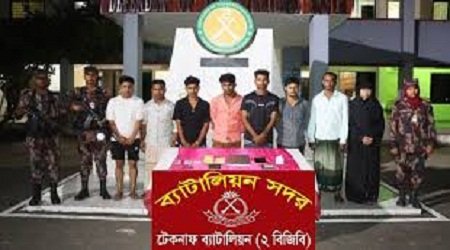 আটক ছয়জন হলেন মোছা. শামসুন্নাহার (৩৫), হোসনে আরা (৩১), নুরুন্নিসা (৪৯), মোহাম্মদ ইসমাইল (৫০), হারুন (৩৫), ইউসুফ আলী (৪৭)। পালিয়ে থাকা আসামিদের মধ্যে কালু মিয়া (৩৫) ও হাশেম মোল্লাসহ (২৫) আরও দুজনকে আটক করতে অভিযান চলছে। টেকনাফ ব্যাটালিয়ন (২ বিজিবি) অধিনায়ক লেফটেন্যান্ট কর্নেল আশিকুর রহমান বিষয়টি নিশ্চিত করেছেন।