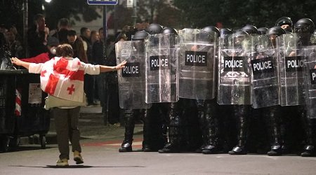 শনিবার স্থানীয় নির্বাচনের দিনে বিশাল বিক্ষোভ প্রদর্শন করে বিরোধীরা। এসময় জর্জিয়ার দাঙ্গা পুলিশ প্রেসিডেন্ট প্রাসাদ থেকে বিক্ষোভকারীদের সরাতে পেপার স্প্রে এবং জলকামান ব্যবহার করে। আটক করা হয় পাঁচজন বিক্ষোভকারীকে।