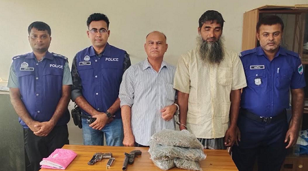 মো. সাইদুল আনাম, কুষ্টিয়া জেলা প্রতিনিধি : কুষ্টিয়ার দৌলতপুরে বিজিবি ও পুলিশের পৃথক অভিযানে অস্ত্র, গুলি ও মাদকসহ ২ জন আটক হয়েছে। বৃহস্পতিবার সকালে পৃথক স্থানে অভিযান চালিয়ে ১টি বিদেশী পিস্তুল, ১টি মাগাজিন, ১ রাউন্ড গুলি, ১টি ওয়ান শুটারগান ও ২ কেজি গাঁজাসহ মাহবুব ইসলাম (৫২) ও ফিরোজ খান (৫৬) কে আটক করা হয়।