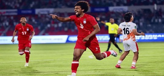 ১৩ মিনিটে বাংলাদেশ এগিয়ে যায়। হামজা চৌধুরীর ডান পায়ের বাঁকানো ফ্রি-কিক এক ডিফেন্ডারের মাথা ছুঁয়ে গোলকিপারের ওপর দিয়ে জড়িয়ে যায় জালে। লাল সবুজ জার্সিতে দ্বিতীয় গোল করলেন হামজা। গত জুনে প্রীতি ম্যাচে ভুটানের বিপক্ষে প্রথম গোল এসেছিল।